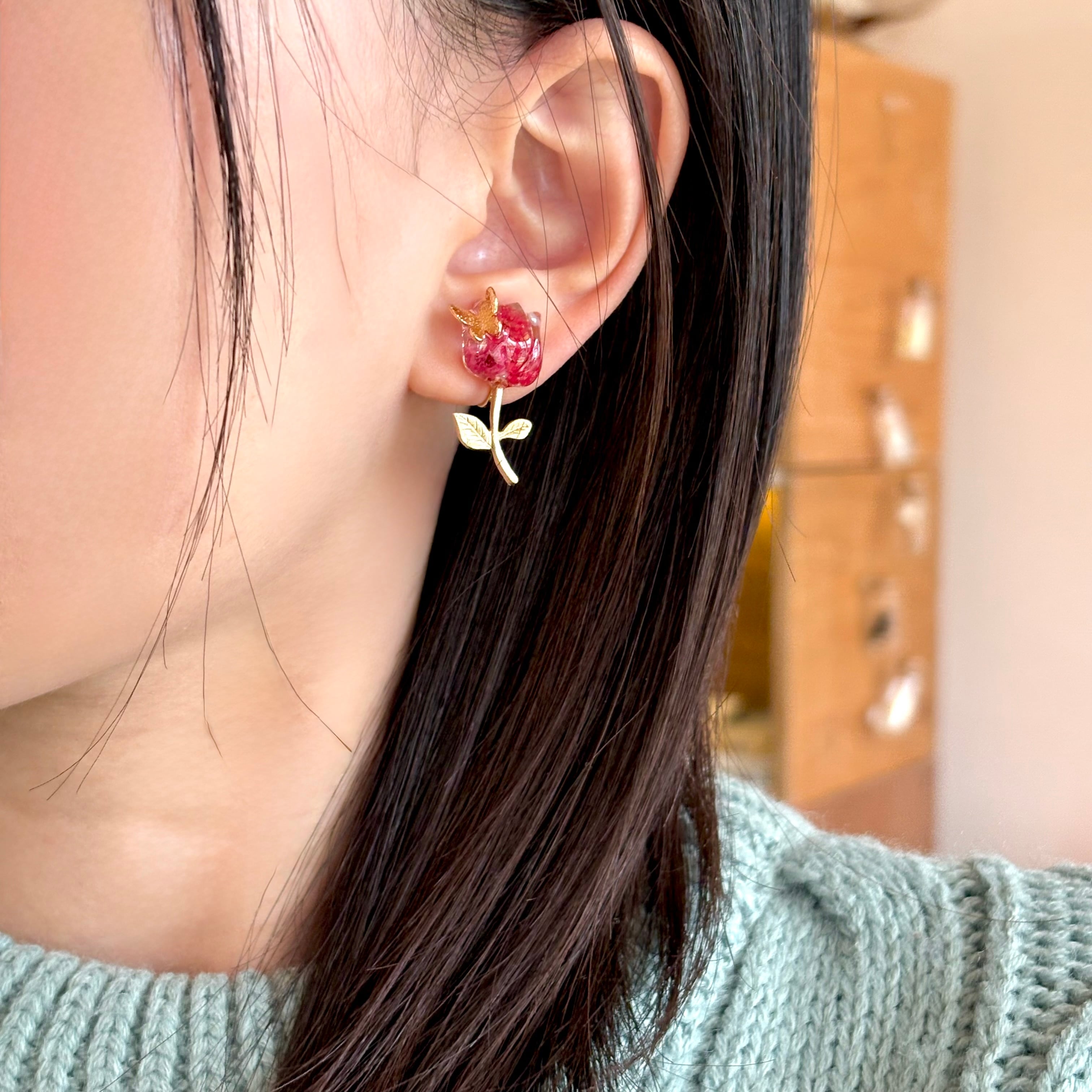 イヤリングの素材は真鍮ですが、「ニッケルフリーメッキ」が施されている為、金属アレルギーが出てしまう人も安心して着けることができます。