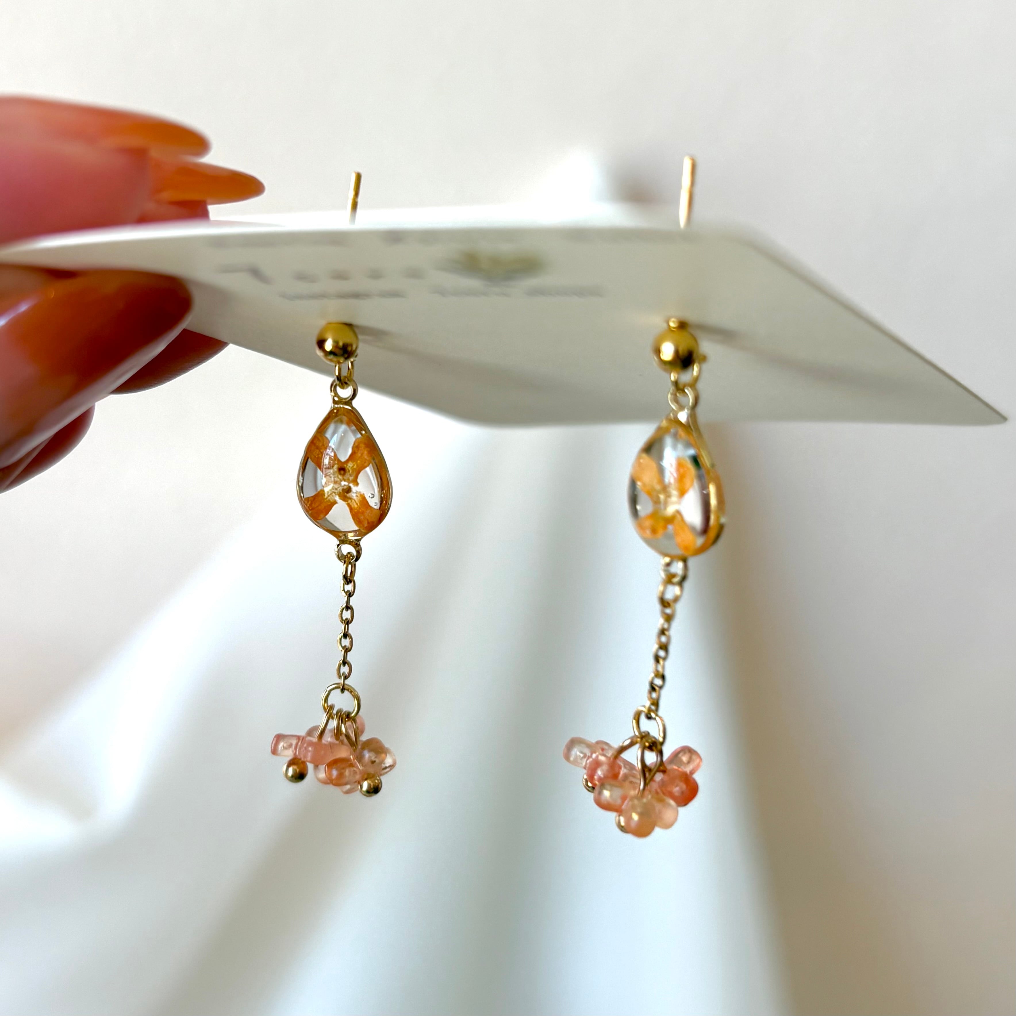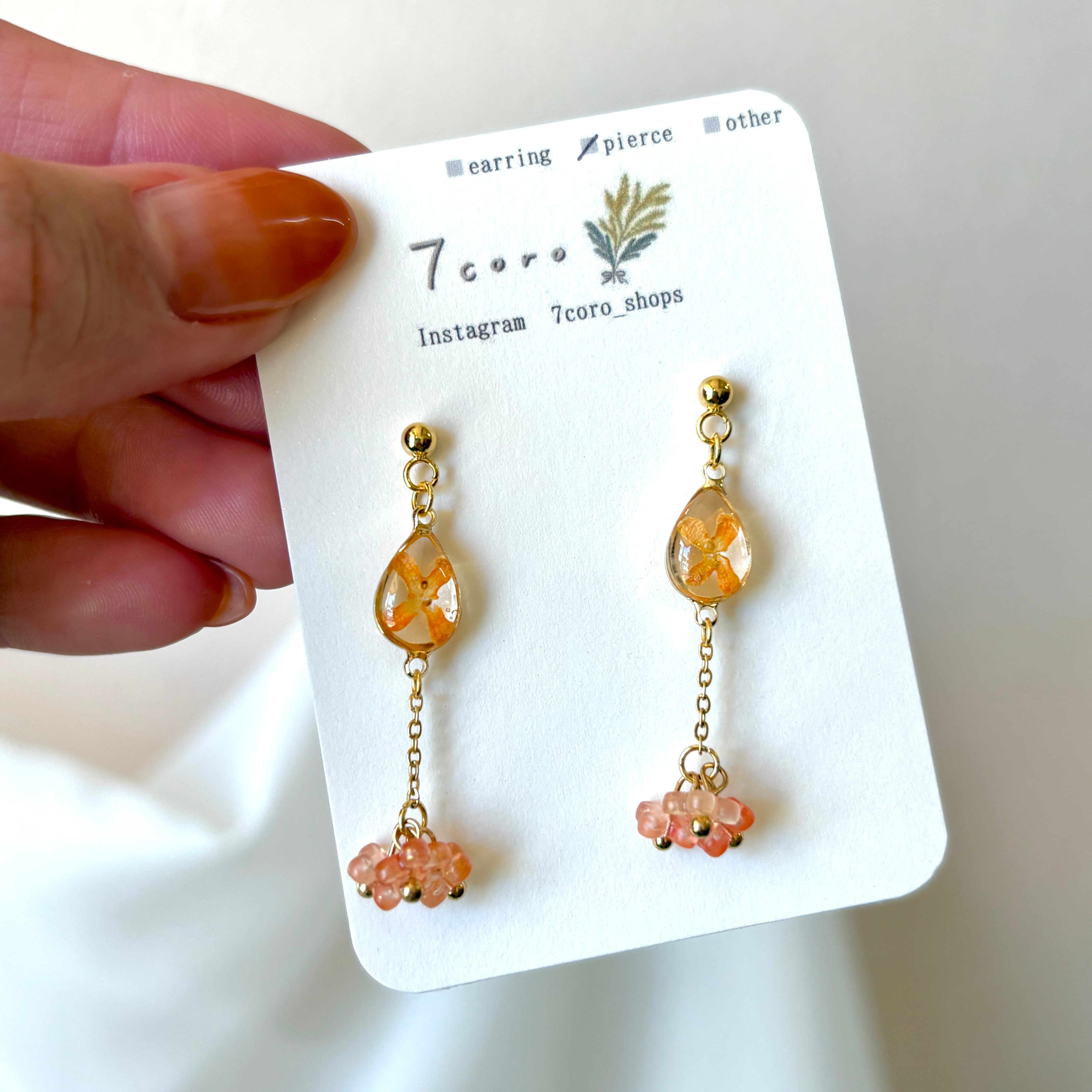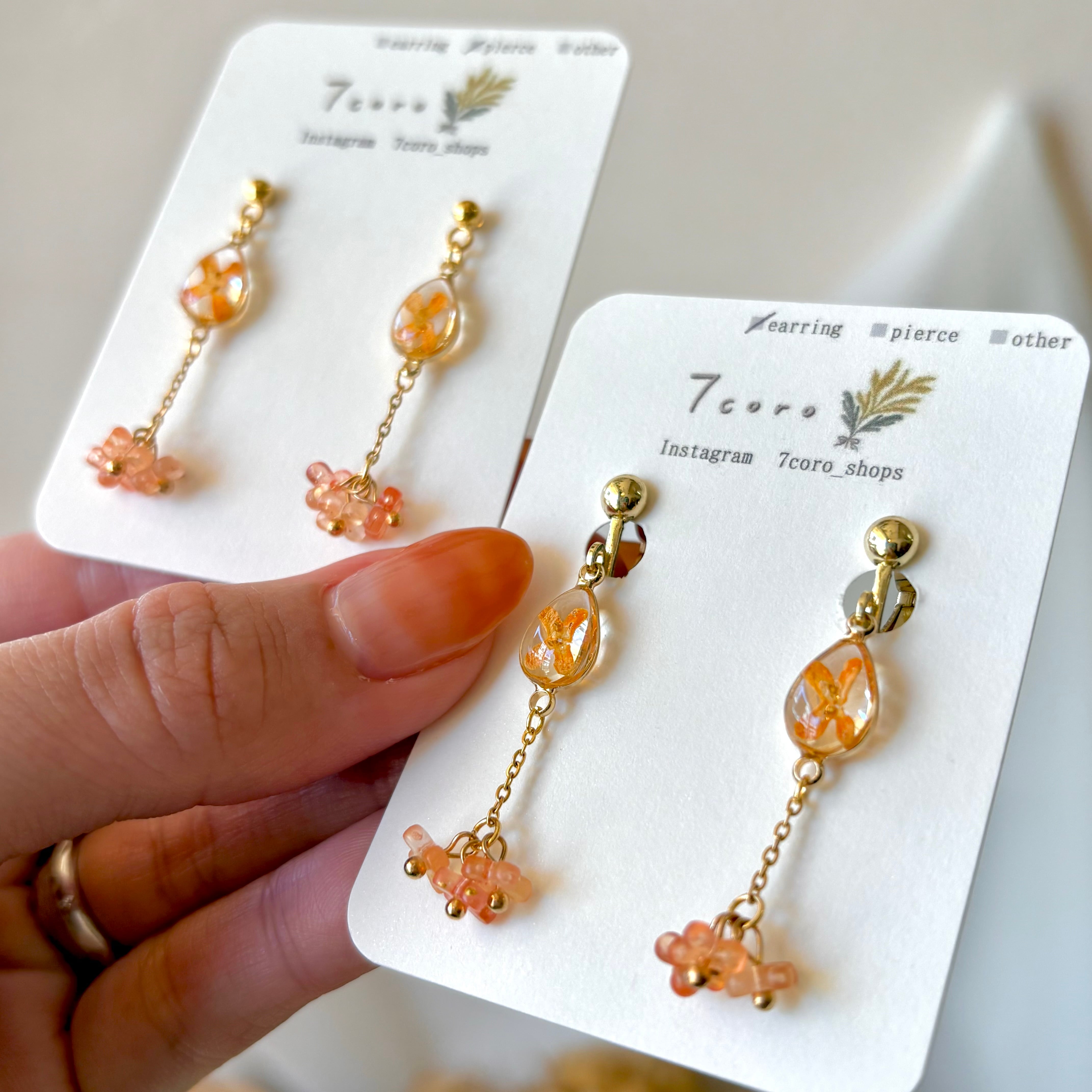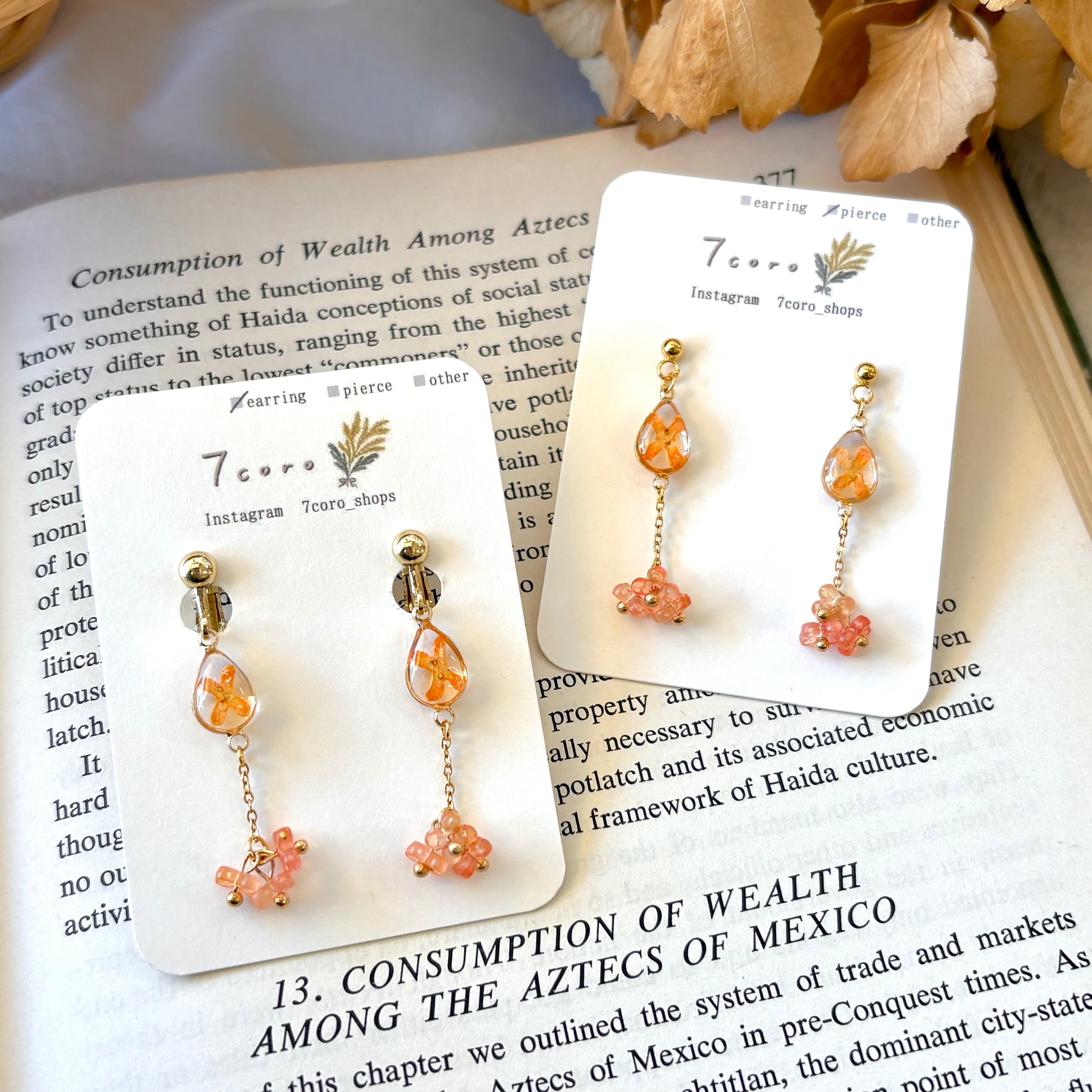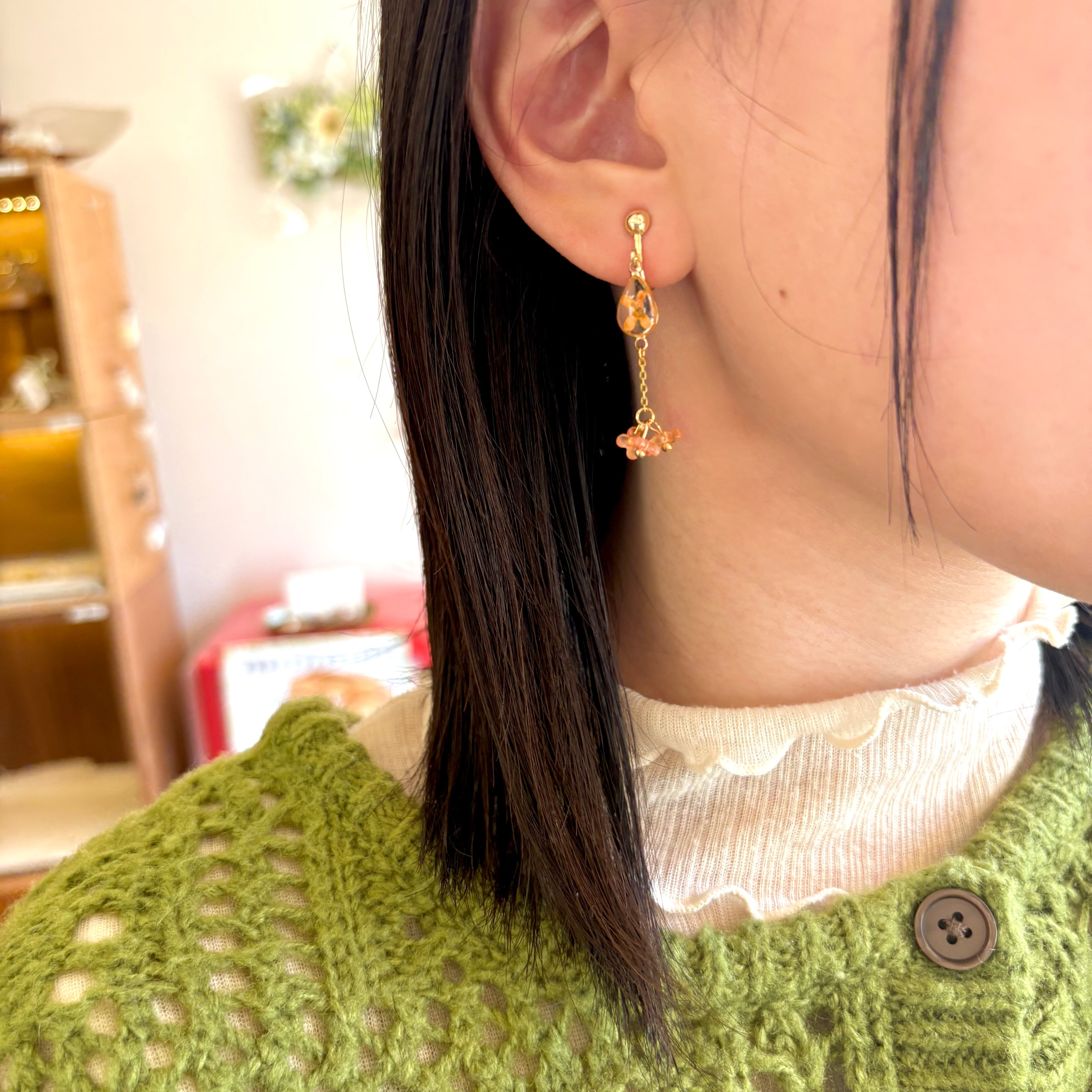 イヤリングの素材は真鍮ですが、「ニッケルフリーメッキ」が施されている為、金属アレルギーが出てしまう人も安心して着けることができます。