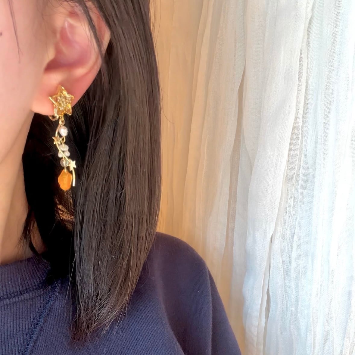 イヤリングの素材は真鍮ですが、「ニッケルフリーメッキ」が施されている為、金属アレルギーが出てしまう人も安心して着けることができます。